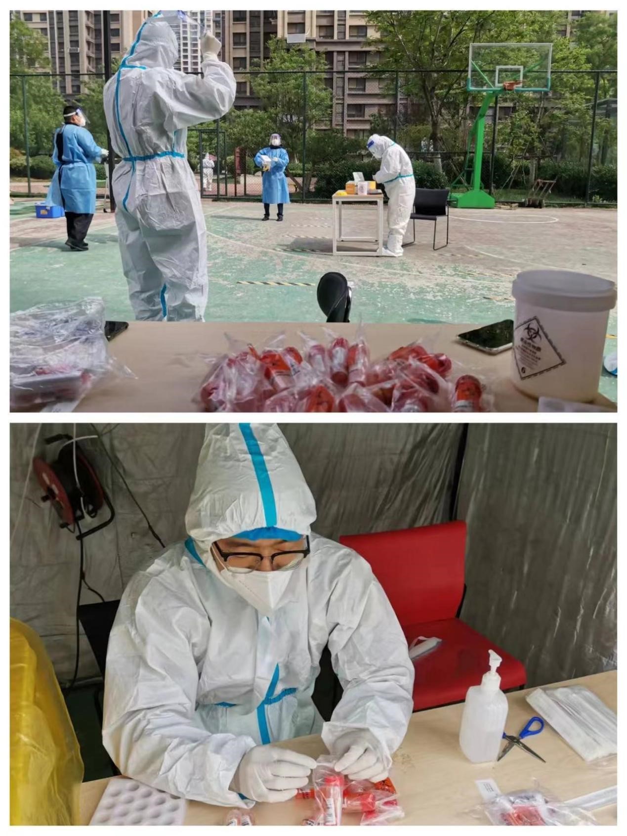 社區(qū)疫情防控情況復(fù)雜,工作量巨大,但沈俊峰始終保有退伍軍人的正直秉性,帶領(lǐng)兩位年輕人沖鋒在前。到崗第二天,三名下沉社區(qū)人員就立即投入工作狀態(tài),協(xié)助社區(qū)嚴(yán)格落實每一個居民應(yīng)檢盡檢,從早上7點到晚上11點,連續(xù)工作十多個小時,完成近3000人的核酸檢測工作。